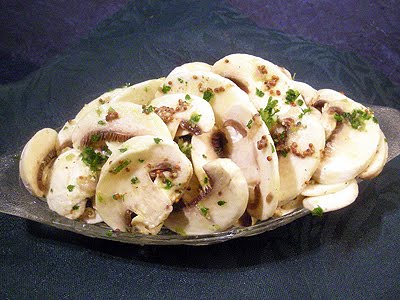 Citron, vin blanc et moutarde à l’ancienne relèvent agréablement cette salade de champignons de Paris.